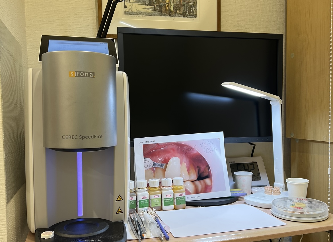 デジタル技術を用いることにより、性格でスピーディーにセラミックを作ることができ、院内で院長が色合わせを行うことにより、精緻な色合わせが行えます。